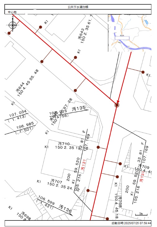 下記は、上下水道・ガスの図面です。実際に掘削を行って調査は出来ません。
