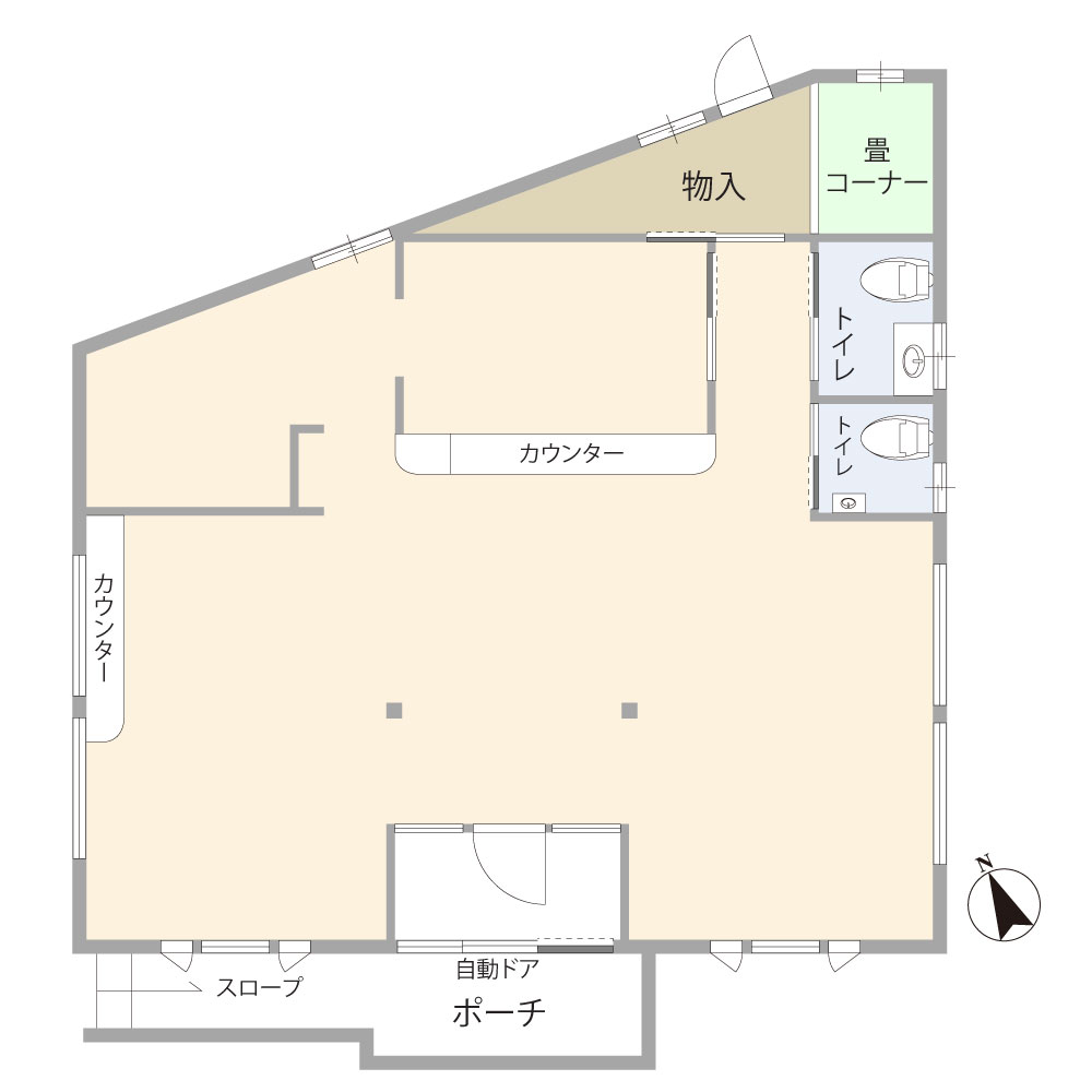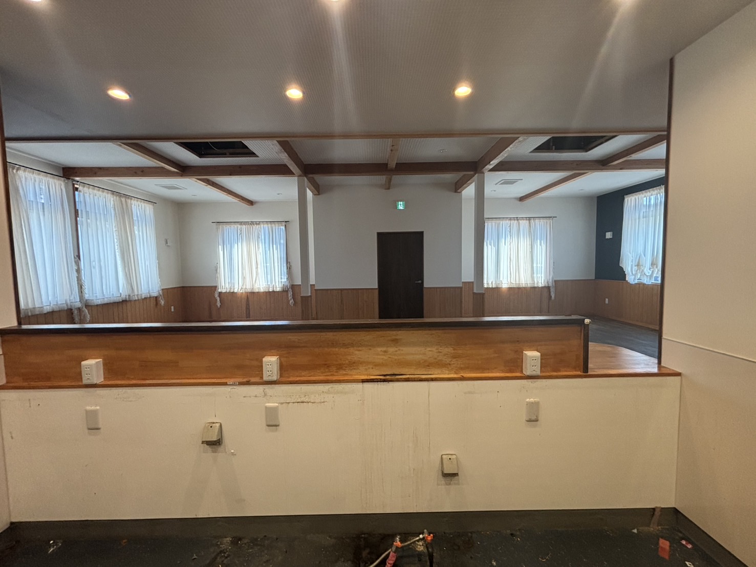 築年数は新しく、次の内装のこだわりが無ければ、床などはそのままご使用頂けるかもしれません。この物件は元々喫茶だったと聞いています。ですが!現在この物件には厨房設備、天井の空調設備はありません。ですから、喫茶の居抜き?なのでは?と考えて頂いた方にはがっかりさせてしまう内容です。